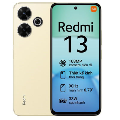 Xiaomi Redmi 13 6GB/128GB hứa hẹn sẽ là thiết bị smartphone giá rẻ gây bão tiếp theo của nhà Xiaomi với thiết kế mặt lưng kính cao cấp cùng bộ thông số ấn tượng như camera 108 MP, viên pin 5030 mAh, tần số quét 90 Hz, hiệu năng mạnh mẽ,... mang đến khả năng sử dụng hiệu quả cho người dùng với mức giá hợp lý.