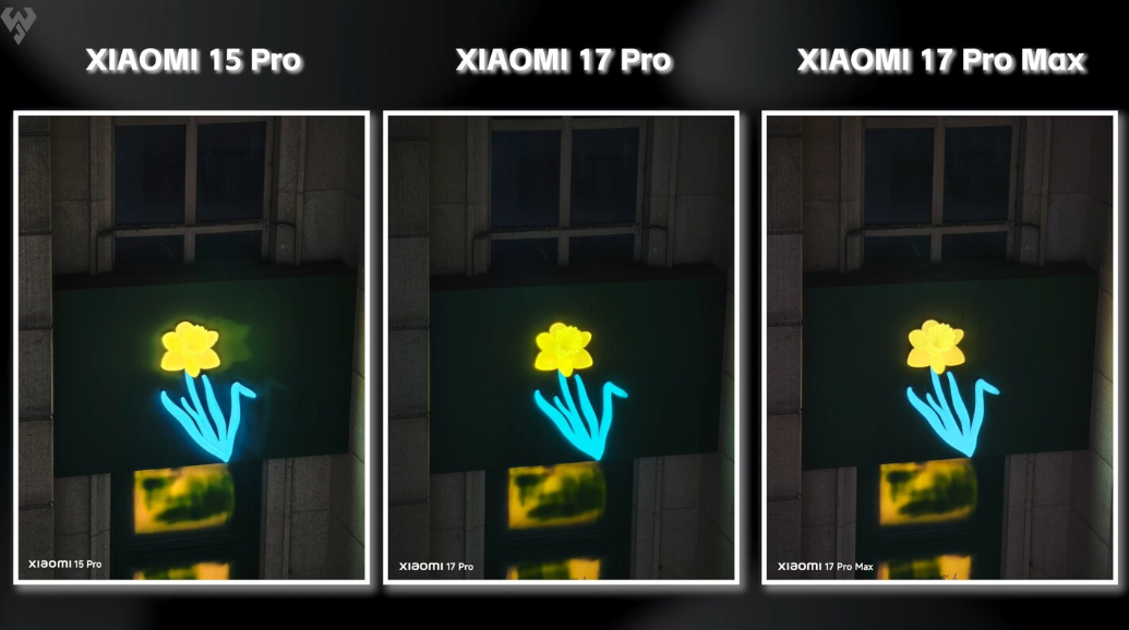 So với Xiaomi 15 Pro, thế hệ 17 Pro được nâng cấp cảm biến mạnh mẽ. Camera chính 23mm trang bị cảm biến Light Hunter 950L với dải sáng lên tới 16,5 stop, cho thấy sự cải thiện rõ rệt về khả năng xử lý ánh sáng và chi tiết. Trong điều kiện ban đêm, cả Xiaomi 17 Pro và 17 Pro Max vượt trội hơn hẳn Xiaomi 15 Pro, đồng thời thể hiện ưu thế trước iPhone 17 Pro Max vốn dùng cảm biến 1/1.28 inch.